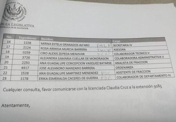 Puede interesarle: Diputados suplentes del FMLN contratados como asistentes de fracción
